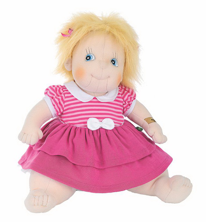 Мягкие куклы Rubens Barn станут надежным другом Вашему ребенку, приятным подарком-сюрпризом близкому человеку, оригинальным аксессуаром в вашем доме. Все куклы выполнены из высококачественных материалов и соответствуют высоким европейским стандартам. Кукла Ида торговой марки Rubens Barn серии Original - замечательная игрушка ручной работы, полностью изготовлена из ткани. Особенностью модели является качество изготовления куклы и ее одежды. Нижняя часть игрушки заполнена особым материалом, что в свою очередь, позволят кукле Rubens Barn сидеть и не падать. Особого внимания заслуживает одежка Иды. Ведь она, как и вся одежда тряпичных кукол шведского производителя пошита из полиэстера. Отметим, что все одежки снимаются, их можно стирать в стиральной машинке и даже утюжить. Что особенно важно так это то, что одежда изготовлена не просто для кукол, а добротно и тщательно прямо как для людей. Ярко-голубые глаза и ресницы вышитые вручную, две ямки по бокам ротика, розовые щечки, волосы украшенные розовым бантиком - все это дополняет образ куклы и помогают создать неотразимый вид ребенка. Rubens Barn Ида серии Original не оставит никого равнодушным к этой кукле. Высокое качество куклы Rubens Barn говорит само за себя, взяв ее в руки один раз, вы не захотите ее выпускать из рук.
