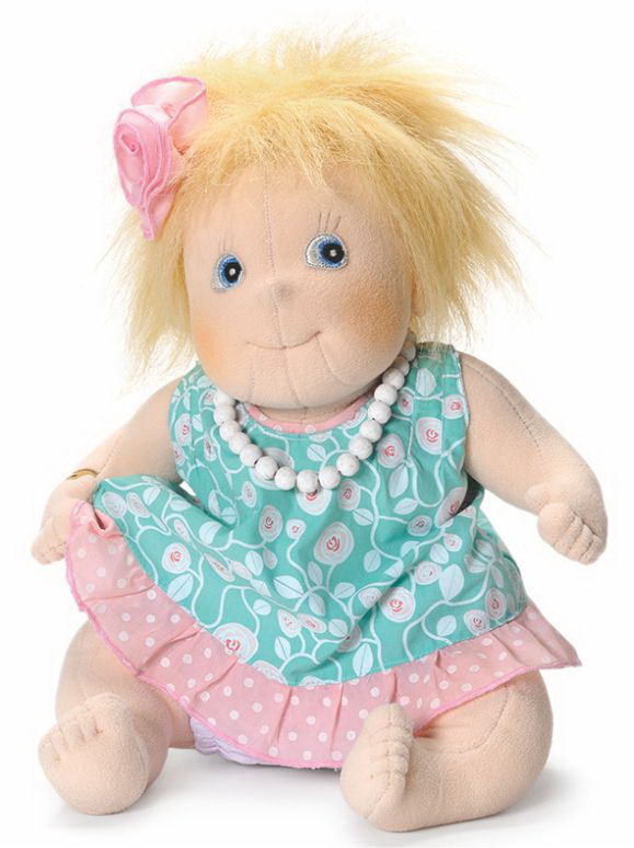 Кукла маленькая Ида торговой марки Rubens Barn серии Little -- замечательная игрушка полностью изготовлена из флиса. Особенностью модели является качество изготовления куклы и ее одежды. Нижняя часть игрушки заполнена особым материалом, что в свою очередь, позволят кукле Rubens Barn сидеть и не падать. Особого внимания заслуживает одежка Иды. Ведь она, как и вся одежда тряпичных кукол шведского производителя, пошита из полиэстера. Отметим, что все одежки снимаются, их можно стирать в стиральной машинке и даже утюжить. Что особенно важно, так это то, что одежда изготовлена не просто для кукол, а добротно и тщательно, прямо как для людей. Смешное розовое платьице с карманов виде сердечка и кроликом внутри. Ярко-голубые глаза, ресницы вышитые вручную, розовые щечки, светлые волосы собранные и красными "бантик" - все это дополняет образ куклы и помогают создать неотразимый вид ребенка.