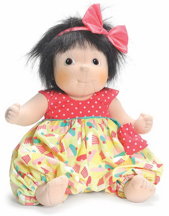 Кукла маленькая Мея торговой марки Rubens Barn серии Little -- замечательная игрушка, полностью изготовлена из флиса. Особенностью модели является качество изготовления куклы и ее одежды. Нижняя часть игрушки заполнена особым материалом, что позволяет кукле Rubens Barn сидеть и не падать. Особого внимания заслуживает одежка Меи, ведь она, как и вся одежда тряпичных кукол шведского производителя, пошита из полиэстера. Отметим, что все одежки снимаются, их можно стирать в стиральной машинке и даже утюжить. Что особенно важно, так это то, что одежда изготовлена не просто для кукол, а добротно и тщательно, прямо как для людей. Темно-карие глаза и ресницы, вышитые вручную, две ямки по бокам ротика, розовые щечки, черные волосы, собранные в смешной хвостик - все это дополняет образ куклы и помогает создать неотразимый вид ребенка.