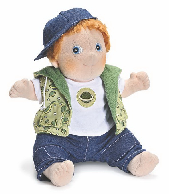 Кукла Rubens Barn Jonathan - очаровательный мальчик, друг для многих маленьких девочек и мальчиков. Он очень добрый и открытый к общению, любит детей. У Jonathan приятные черты лица, добрые глазки, милый курносый носик и очаровательные вышитые веснушки на щечках. Яркие вышитые голубые глазки украшены длинными ресницами. Все детали делаются вручную, делая почти невидимыми небольшие различия в каждой кукле. Так каждая кукла Рубенс становится уникальной личностью, с душой и выражением лица. Jonathan имеет прекрасные мягкие волосы, что очень приятно на ощупь. Одежда сшита из полиэстера. Jonathan очень модный. Он любит зеленый цвет и планеты. Его одежда отражает все его предпочтения, поэтому он одет в приятно-зеленого цвета толстовку с изображением планеты, жилеточку и джинсовые брючки. Чтобы ему было удобно сидеть, в нижней части куклы есть специальные гранулы. Вся одежда снимается и легко стирается. А если захочется сшить для Jonathan новый наряд - он будет этому очень рад и с удовольствием примерит все обновки.