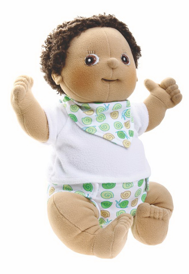 Макс одет, как и все малыши его возраста -- подгузник, белая футболка и слюнявчик. Вся одежда снимается отдельно друг от друга, и при необходимости может быть постирана и даже поутюжена. Карие глаза и ресницы, вышитые вручную, розовые щечки, нежные на ощупь каштановые волосы, маленькие ушки и смешной носик - все это дополняет образ куклы Rubens Barn и помогают создать неотразимый образ ребенка.