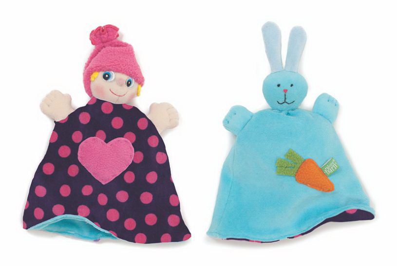 Twisty - это двухсторонняя игрушка-обнимашка для новорожденных от Rubens Barn. С одной стороны это голубоглазая девочка в розовой шапочке и платье в горошек, с другой - милый голубой зайка. Кукла, сшитая из невероятно мягкого материала, успокоит Вашего малыша перед сном.
