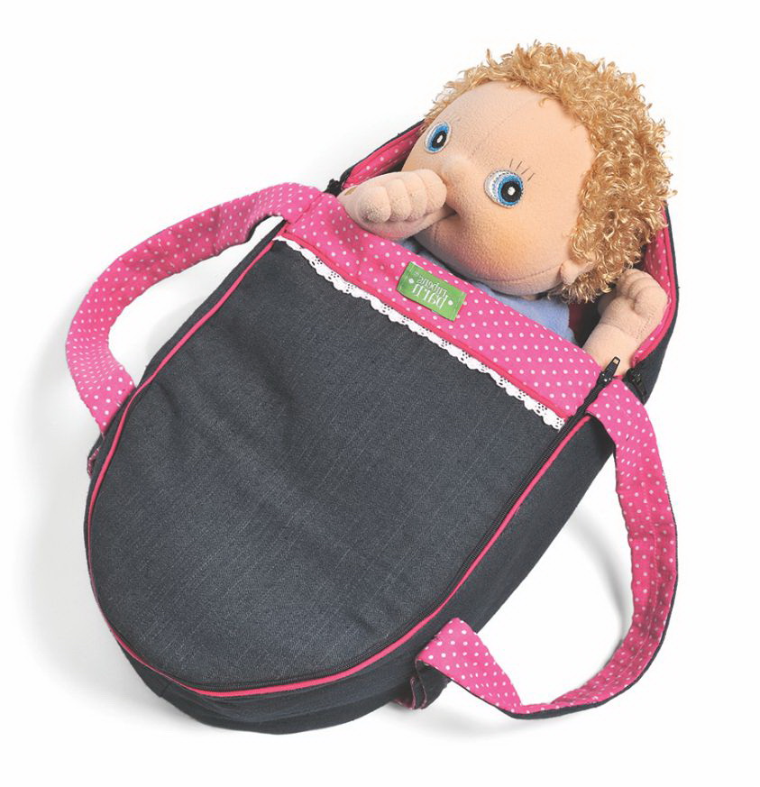 Переноска от Rubens Barn - это многофункциональный игрушка: можно сложить все аксессуары для куклы по специальным карманам, ее удобно носить в руках или носить на плечах в качестве кенгуру или как рюкзачок.