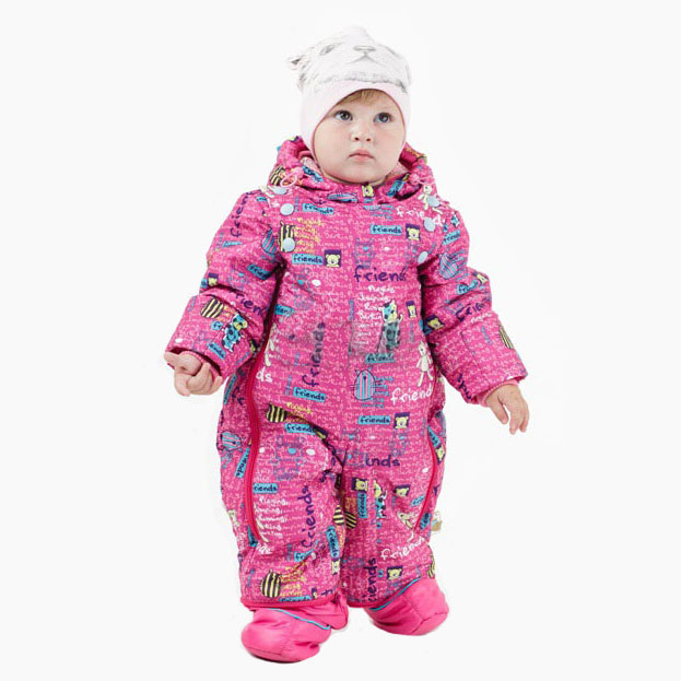В комплекте с трансформером имеются пинетки, пристегивающиеся на клепки. Трансформируется в конверт или в комбинезон. По краю капюшона и на рукавах предусмотрены трикотажные подвязы. Капюшон декорирован ушками, по краю проходит утягивающая кулиска.