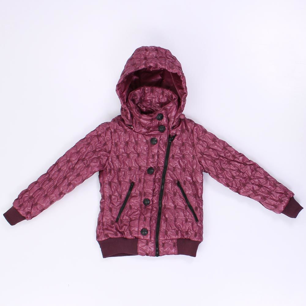 Куртка застегивается на молнию, дополнительно декорировано крупными пуговицами.