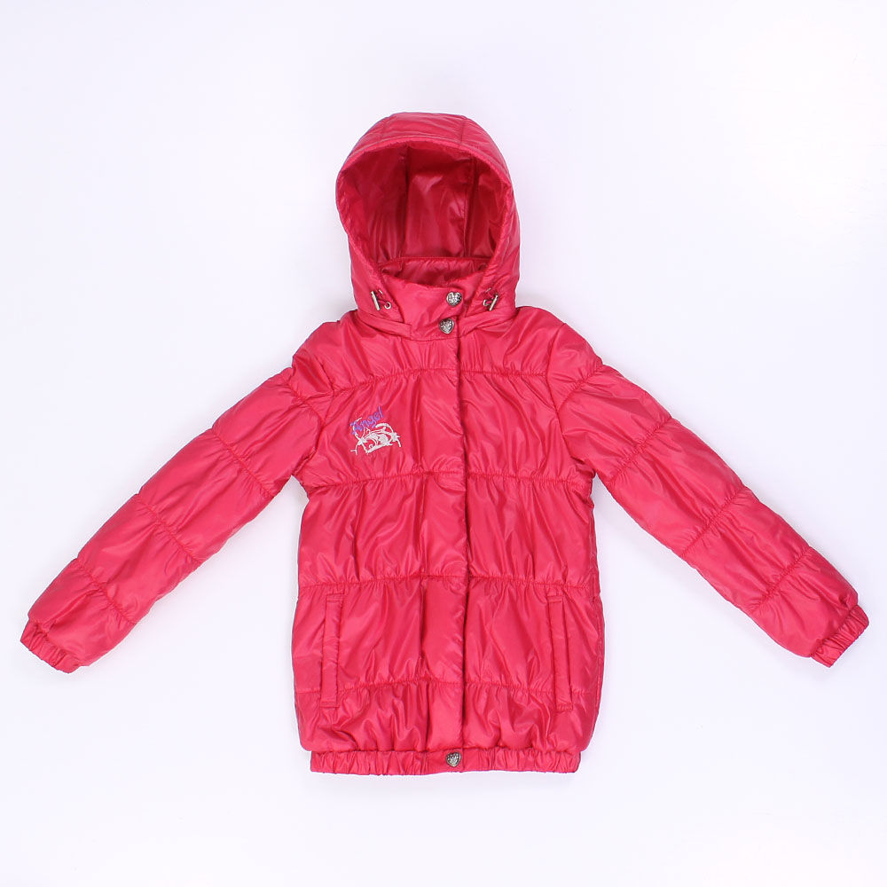 Удобная, мягкая, непромокаемая куртка для девочки.Застегивается на замок -- молнию, рукав на резинке, капюшон отстегивается.