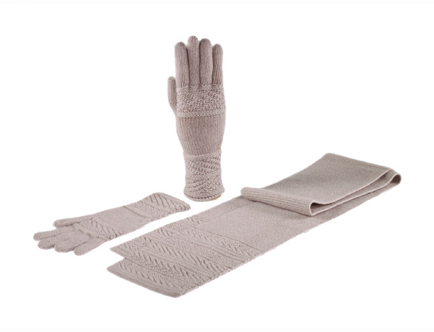Комплект включает в себя шарф и однослойные перчатки.