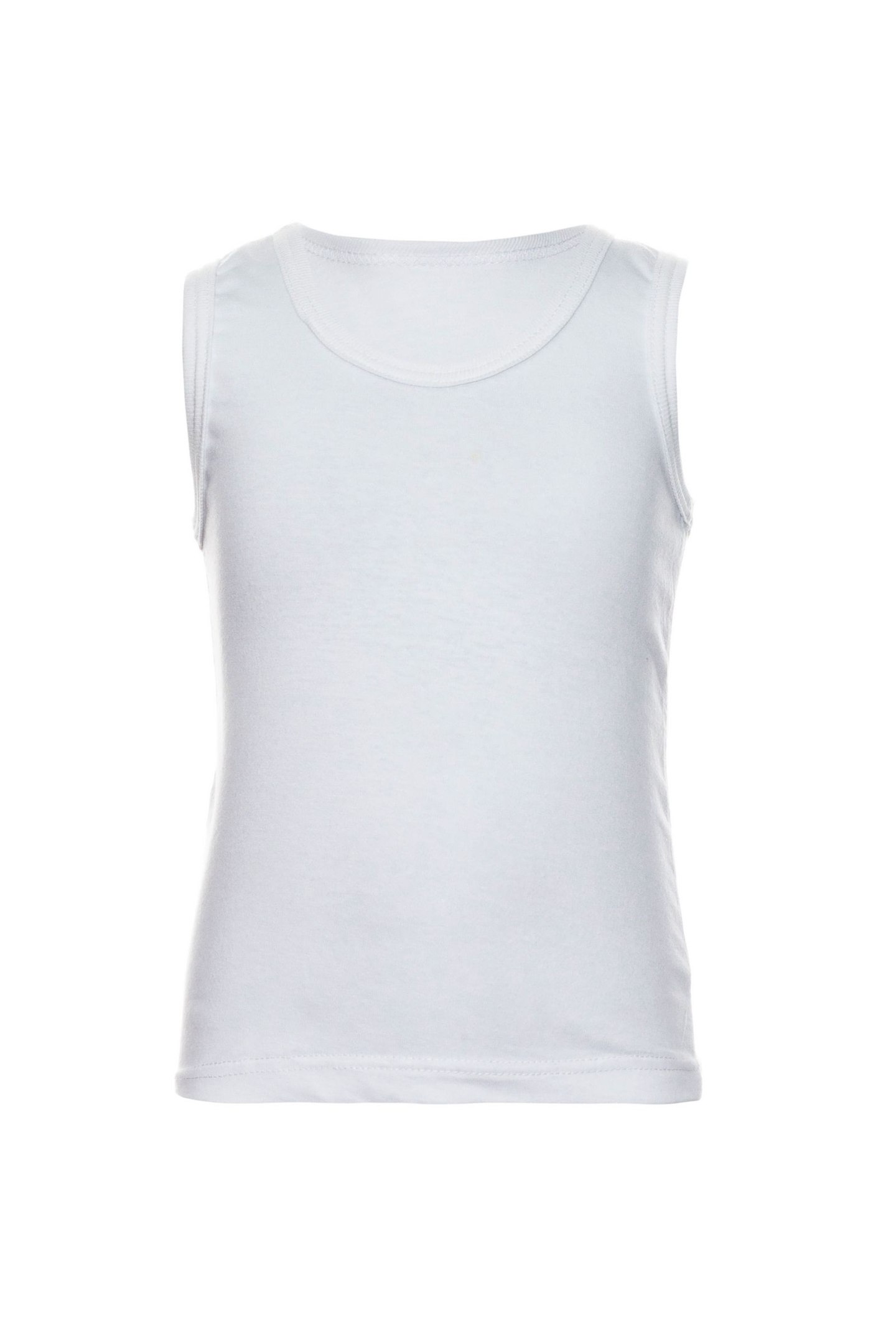 Детская майка из трикотажного полотна, кулирная гладь, из 100% хлопка, дарит ощущение комфорта. Дизайн: классический. Цвет: белый. Использование всесезонное.